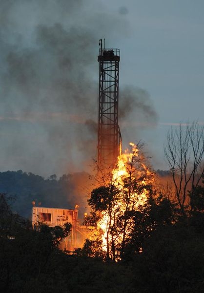 monitor a natural gas rig which caught fire early Sunday on Pleasants