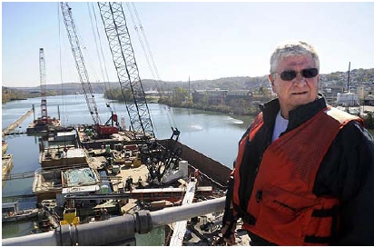 Lockmaster John Booker looks over Locks and Dam 4 in Charleroi, where a major new construction project is under way for the river wall.- Andy Starnes/Post-Gazette