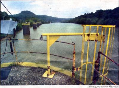 On Monday, all barges had been removed except the two coal barges that lay submerged.