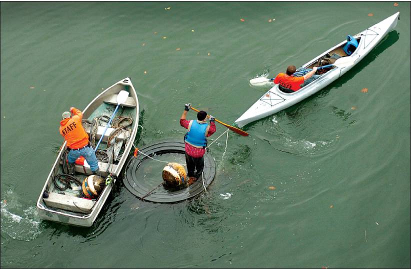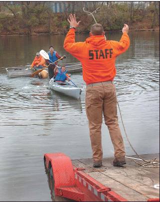 Chad Ord (left, front) tosses a rope to the crew. Bob Gay/The Dominion Post photo