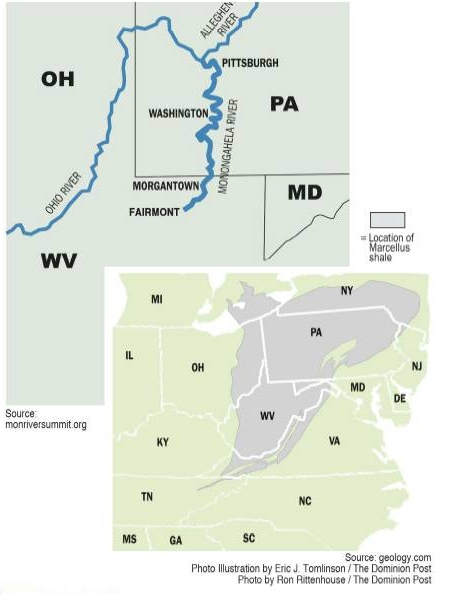 The Marcellus Shale is a rock formation rich in natural gas deposits that runs beneath portions of Pennsylvania, New York, West Virginia, Ohio, Maryland, Virginia and Tennessee. The natural gas is costly to extract. Drilling typically involves blasting millions of gallons of water underground to release the natural gas locked in the deep rocks.
