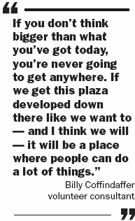 But, "if you don't think bigger than what you've got today, you're never going to get anywhere," Coffindaffer said. "If we get this plaza developed down there like we want to - and I think we will - it will be a place where people can do a lot of things."